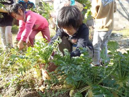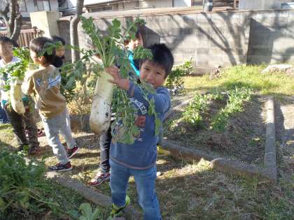 むくのきの畑の大根が,ふっくら大きく育ちました。あまりに大きくなったので、みんなびっくり。大きいとやっぱりうれしいです!さあしっかり抜いて洗って・・・