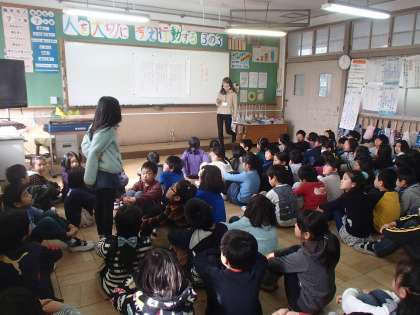 三年生は,『さよならを空にとばして』という歌とお祝いの言葉のプレゼントを贈ります。どんな気持ちで歌ったらよいかを尋ねると,「縦割りの時に,一生懸命僕らを楽しませるゲームを考えてくれてありがとう。」「集団登校では私たちの安全を考えながら,学校まで連れて来てくれてありがとう。」「いつも,色々なことを優しく教えてくれてありがとう。」など,次々に感謝の気持ちが出てきました。