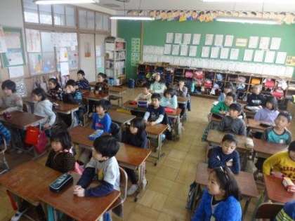 3月の朝会では,放送で行われました。教室で,校長先生のお話を手・耳・口など,体を使って聞いていました。3月は,1年間の締めくくりの月です。お話を聞きながら,学校目標をもとに1年間をふりかえりました。学校目標の「進んであいさつする子」「しっかり聞く子」「はっきり話す子」「きまりを守る子」「人を大切にする子」はどれも,この1年間でできるようになったものです。学校だけでなく,地域など社会に出たときにも発揮してほしいと思います。
