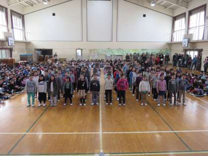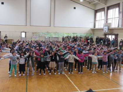 3年生は,歌とエールの声を切り替えるところや,振り付けを大きく恥ずかしがらずにするところに気を付けながら出し物をしました。みんなの前でドキドキしながらでしたが,心をひとつに力を出し切った後の子ども達の表情は,キラキラ輝いていました。