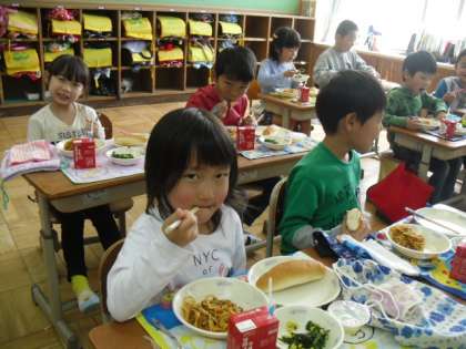 今日は1年生にとってはじめての給食の日でした。
