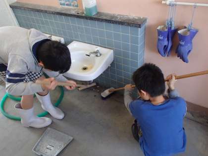 6年生になってから初めてのトイレ掃除がありました。高学年は,毎週火曜日にトイレ掃除をします。自分たちが使うトイレをきれいにしていました。