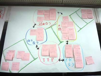 先日の研修で行ったブレーンストーミングを用いて共通理解したものを,職員室の後ろに掲示しています。
