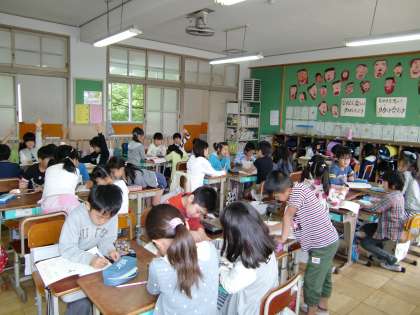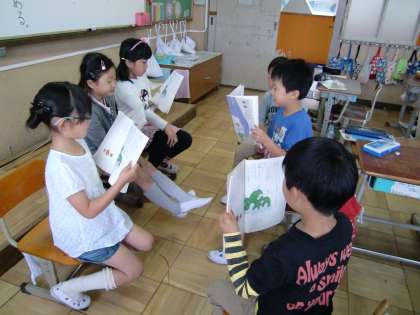 音読発表会に向けて,練習をしています。まず,どの文を読むのかパート分けをします。一人読み,グループ読みなど,場面によって工夫をします。次に,声の強弱・はやさなど声の工夫を考えます。最後に,立ったり座ったり身体的な演出を加えています。これを子どもたちでします。真剣に取り組んでいます。発表会が楽しみです。