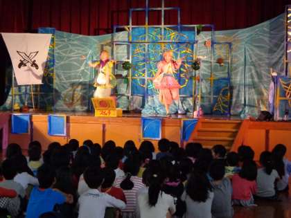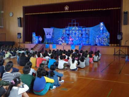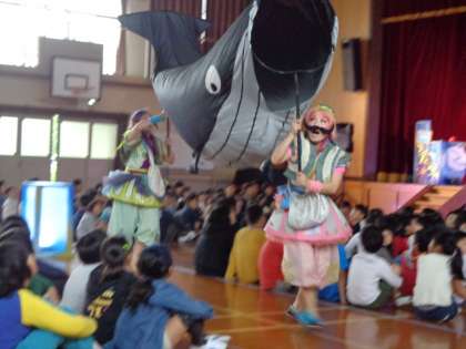 芸術鑑賞教室で,なんと!学校にプロの劇団の方が来られ,ミュージカルが鑑賞できました。お話は「シンドバッドの冒険」です。前々から楽しみにしていた人は,本を読んで予習してきていました。客席とステージが一体となって臨場感のある楽しいミュージカルでした。