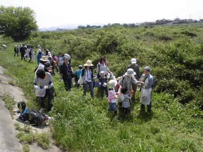 14日,晴天の中,梅津まちづくり委員会主催での「梅津の植物観察と野草料理の集い」が開催されました。