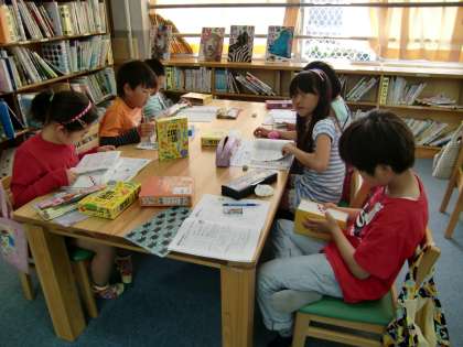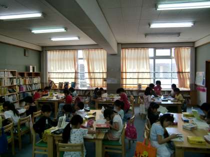 国語辞典の使い方をほんのもりで学習しました。図書室の机は広いので,辞書を広げゆっくり調べることができました。見出し語は,五十音順にならんでいるので,五十音がすぐに思い浮かぶと,辞書を引くのが楽しくなってきます。初めの辞書学習にも関わらず,探すのが速く驚きました。
