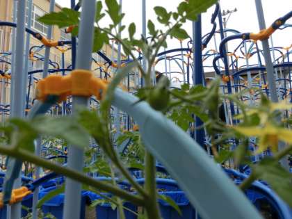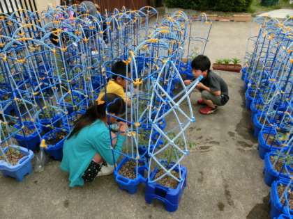 二年生で育てているミニトマトが育っています。