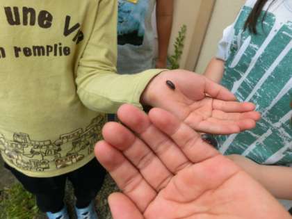 生活科の学習で,校内の草花の中にいる小さな生き物たちを探しに行きました。