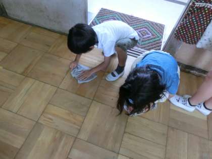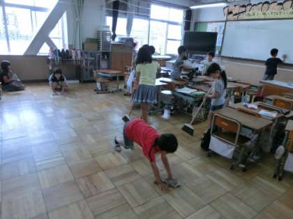 雑巾の当番の人は,ただ教室の床を拭くだけではなく,特に汚れている場所を見つけて,自分からすすんで拭いている姿も見られます。