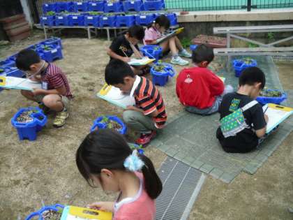 子どもたちは,「はっぱのかたちがはじめのとちがう〜。」「さわったら,なんかふかふかするで!」と成長の様子を敏感に捉えて記録していました。