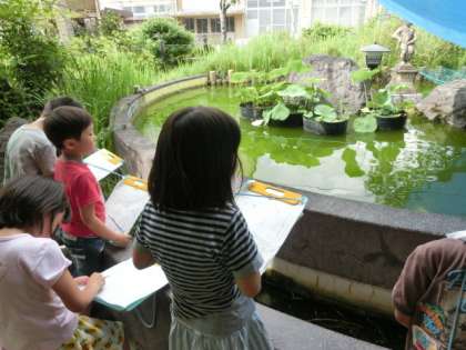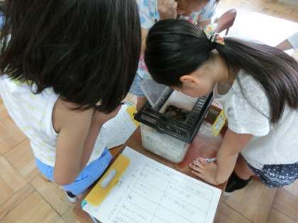 先日観察したミニトマトを引き続き観察したり,生活で飼育しているザリガニを見たり,