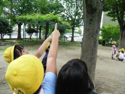 富士保育園は,出身の子たちが懐かしそうに通り,大縄場公園では,「きのこが生えてるところがある。」「赤い花が咲いていた。」などたくさん見つけたりしていました。