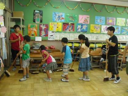 4月から6年生にそうじしてもらっていた教室を自分たちでもそうじしようということで,今週から6年生に教えてもらって,一緒に教室そうじをしています。