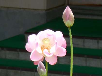 今日の朝会で4月から子どもたちが頑張ってきたとことにの中から自慢できるようになったことを紹介しました。1つ目は,あいさつができる人が増えたこと。2つ目は,そうじを頑張る人が増えたこと。3つ目は,トイレのスリッパを揃える人がいること。4つ目は,ろうかをゆっくり歩く人がいること。5つ目は,返事を「はい」を言える人が増えたこと。6つ目は,しっかり勉強する人が増えたこと。7つ目は,進んで手を上げる人が増えたことです。その他に,20年前にあった縄文ハス(オオガハス)の花が咲いていること。これからもたくさん梅津小学校の自慢が増えるように頑張ってほしいと思います。