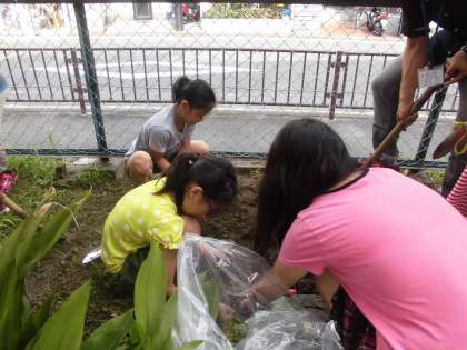 ひまわりも芽を出し,今日は植える場所の整備を行いました。