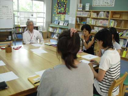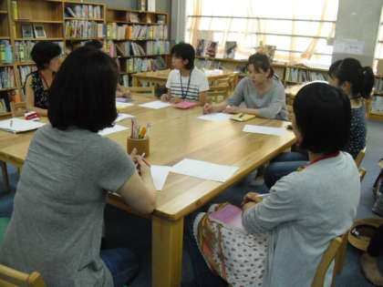 学校図書館 ほんのもりでボランティア活動をしてくださる保護者のみなさんが集まってミーティングが行われました。