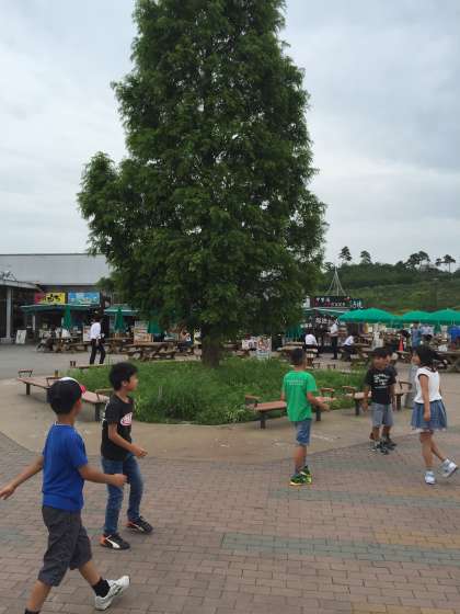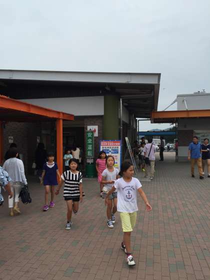 バスの中では、トンネルに歓声。看板の大きさにどよめき、と、新鮮な旅を楽しんでいるようです。