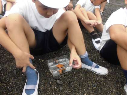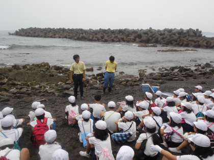 マリンランドの職員の方から、ヒトデを使った実験を紹介してもらいました。