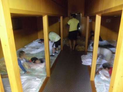 今日は女子が90畳、男子がバンガローで寝ます。