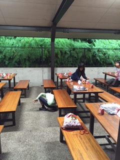 食事係の子たちが先に準備をします。