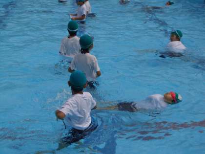 もし,突然水の中に落ちてしまったら,あわてずに浮いて助けを待つことが大切です!