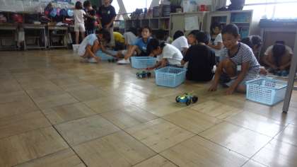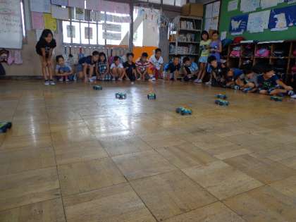 最後に,モーターを使った車を走らせてレースを行いました。