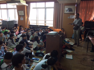 5名の昆虫スペシャリストのゲストティーチャーや梅津まちづくり委員会の皆様にお越しいただき,桂川河川敷へ昆虫の観察・学びを予定しておりましたが,前日からの雨の影響で,室内でのお話に変更となりました。
