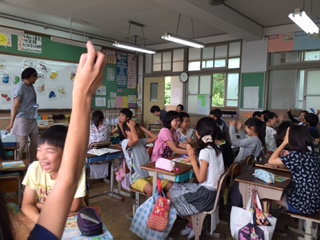 ALTのファリス・マリア先生のテンションに負けじと,子供たちも思いっきり英語でコミュニケーションをとることを楽しんでいました。