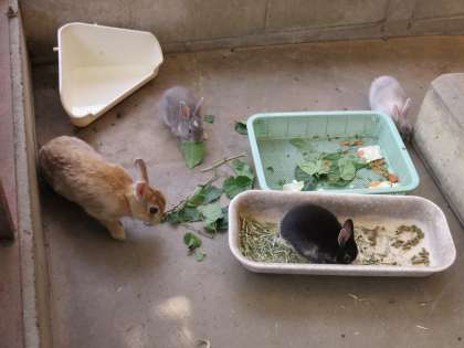 子ウサギが産まれて1ヶ月以上経ちました。子ウサギも母親と同様の餌を食べるようになり,ようやく安心できるようになりました。8月1日の今日,出産以来の小屋の掃除を行いました。今日の飼育当番の女の子4人が1時間半もの間がんばって掃除をしたり,土の入れ替えをしたりしていました。暑い中ご苦労様です。ウサギも喜んで?いるでしょう。小屋の中の木製のハウスも一新しました。元気に健康で育ってほしいと思います。