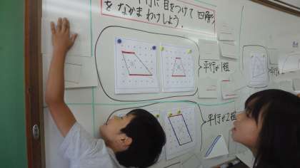 この学習から「台形」・「平行四辺形」の特徴を子どもたちの活動からおさえることができました。