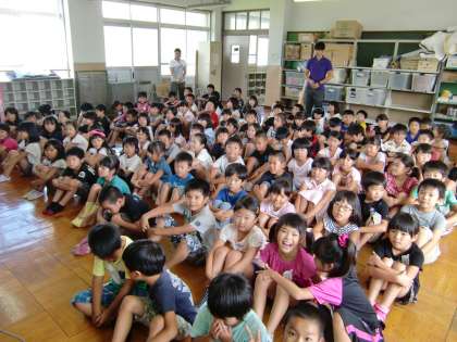 夏休み明け,学年で集まりました。生活科ルームに103名!まあ〜人口密度は高いこと!でも嬉しい!怪我なく無事に元気に子どもたちが,揃う喜びは格別です。みんないい顔していました。