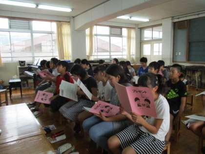 10月の学童音楽会の向けて,「プレゼント」の曲を合唱しています。まだ、練習を始めたばかりなので,だれもがソプラノ,アルトの練習をしています。もう少し歌いこんでからパートを決めていきます。みんな,この曲を気に入ってくれたようで,真剣に練習しています。教室でも口ずさんでいます。これから,本格的に練習していきます。