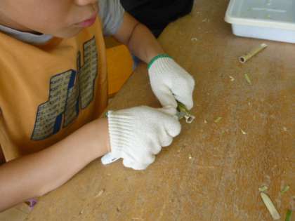 桂川にたくさん生えている竹を使って竹笛をつくりました。