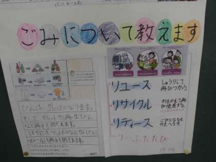 学校でも,燃やすごみ,プラごみの分別。紙ごみの再利用を進めています。