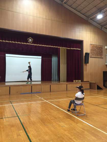 子どもたちが帰った放課後。体育館をのぞくと担任の先生たちによる”お手本DVD”作成の真っ最中。