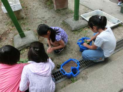 細くてまだ弱々しい茎をそっと持って,大事に植えました。