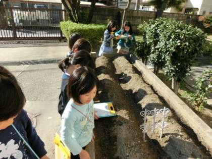2年生は,生活の学習で大根の種を植えています。