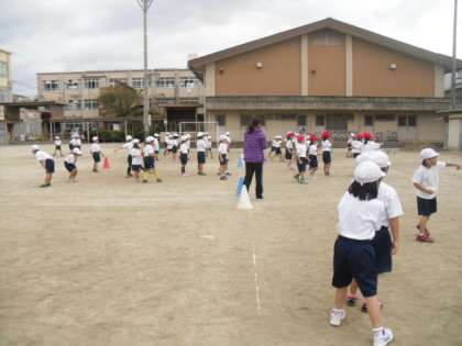 ボールを力いっぱい投げたり,必死に逃げたり・・・ボールが動くたびに歓声が上がっていました。当たってもにこにこしながら外野に走っていく子も見られ,心からドッジボールを楽しんでいることがよ〜く伝わってきましたよ!
