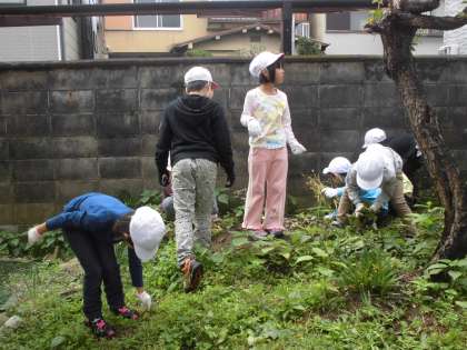 雑草抜きを中心に,どの学年も一生懸命掃除に励みました。