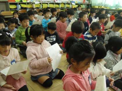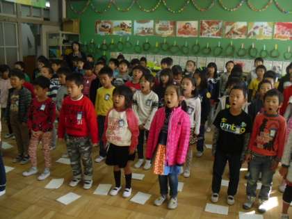 1曲は子どもたちがよく知っている曲ということで,元気よく歌うことができました。もう1曲は新しい曲です。歌詞をよく見ながら,少しずつ歌い進めました。