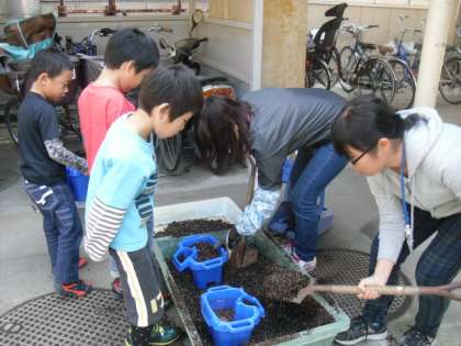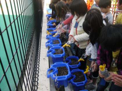 花がさくのは,まだ少し先・・・子どもたちが2年生になる頃です。赤・ピンク・黄・紫のきれいな花が咲くのを楽しみに,育てていきたいと思っています。