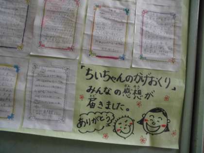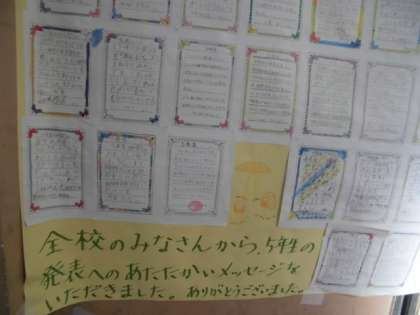 先日行った学習発表会について,全校児童一人一人が心に残った学年へお手紙を書く取組を行っています。