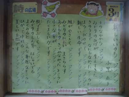 3月の詩は,小黒恵子さんの「新しいいのち ジンジン」です。