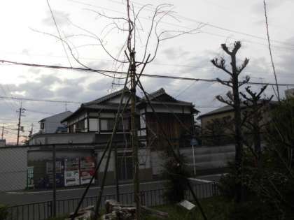昨年度末に学校緑化事業の一環で植えた東門北側の桜。
