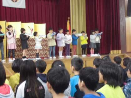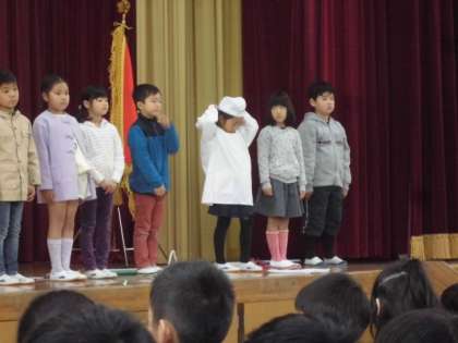 2年生の代表の子どもたちは,お迎えの言葉を伝えました。