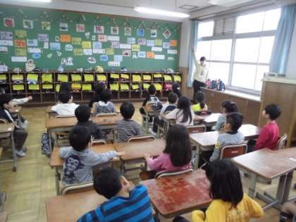 1年生は,健康観察での返事の仕方,ランドセルの片づけ方,正しい姿勢での座り方など,