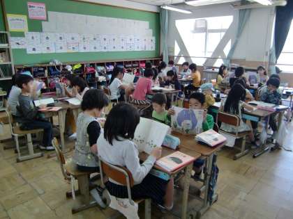 「コーン」や「シャバシャバシャバ」など音をあらわすにはどのように音読をしたら情景が伝わるのか考えながら音読の練習をしています。