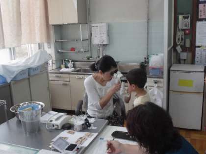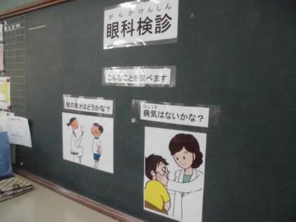 今日は眼科検診。校医の西田先生から一人一人診ていただきました。
