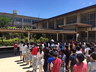 直前に行った体育館での声とは比べものにならないくらいの堂々とした声が,運動場に響き渡りました。